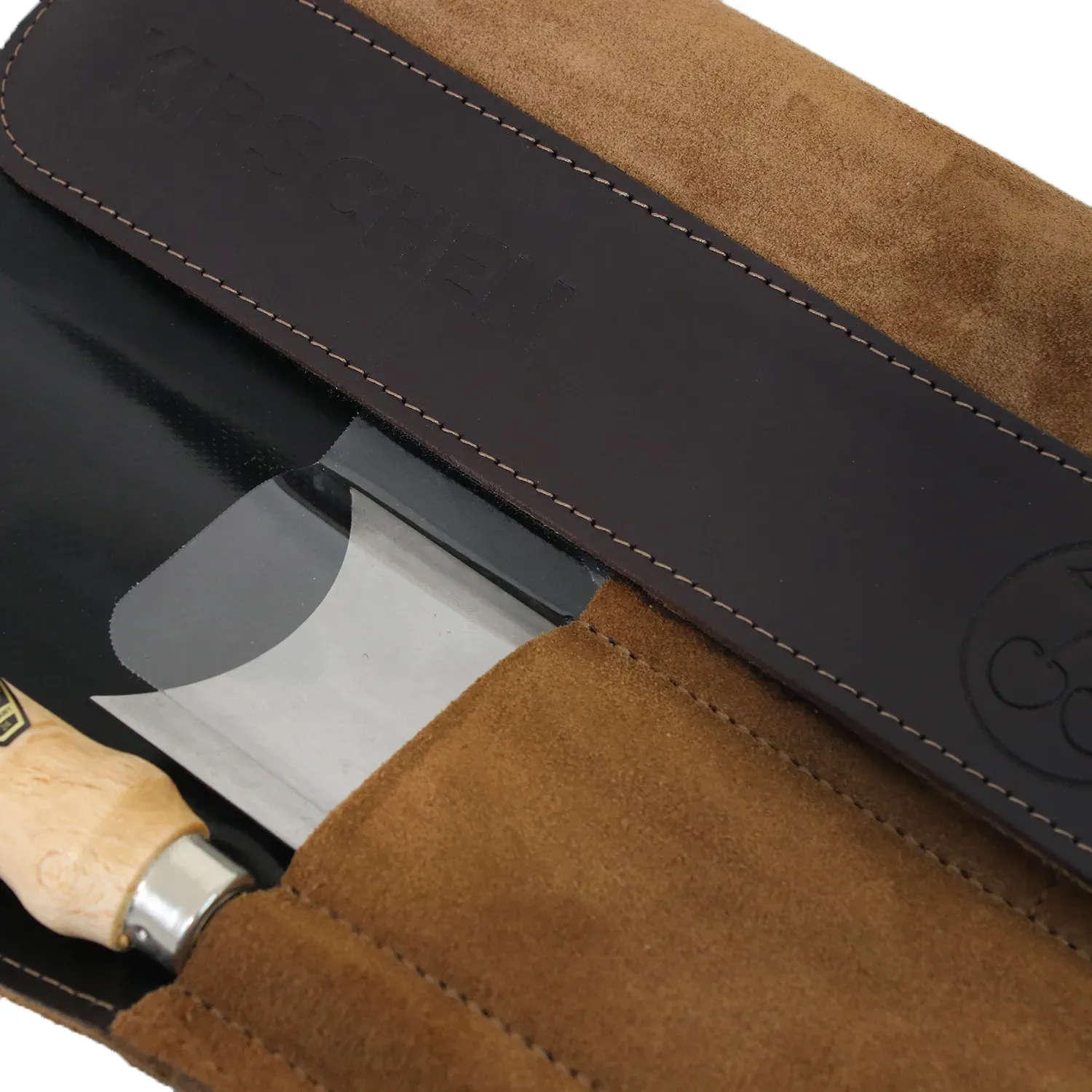 Ce set, de très belle facture, est composé de 4 outils. Un racloir droit, un racloir avec courbe concave et convexe, un racloir en col de cygne et enfin un affiloir. Le tout est livré dans une pochette extérieure cuir et intérieure en plastique et nylon pour une résistance à l'abrasion. Ranger les racloirs n'est pas du luxe. En effet, pour garder l'affûtage, pas toujours facile à faire, il est regrettable de mettre son racloir en vrac dans la caisse à clous.