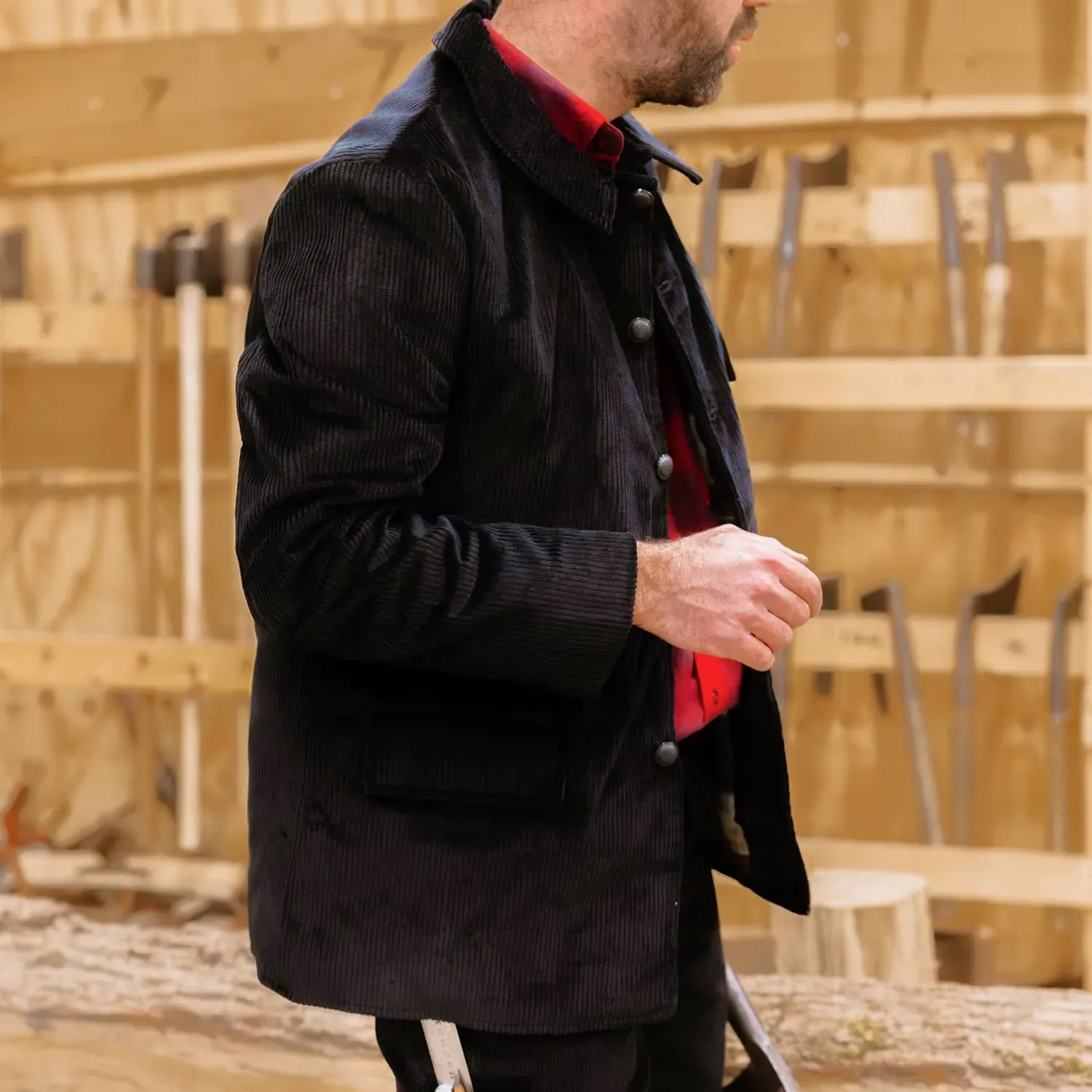 Son velours épais et sa doublure écossaise lui confèrent une chaleur et une prestance uniques. Un vêtement qui raconte une histoire – celle du travail bien fait et des belles matières.