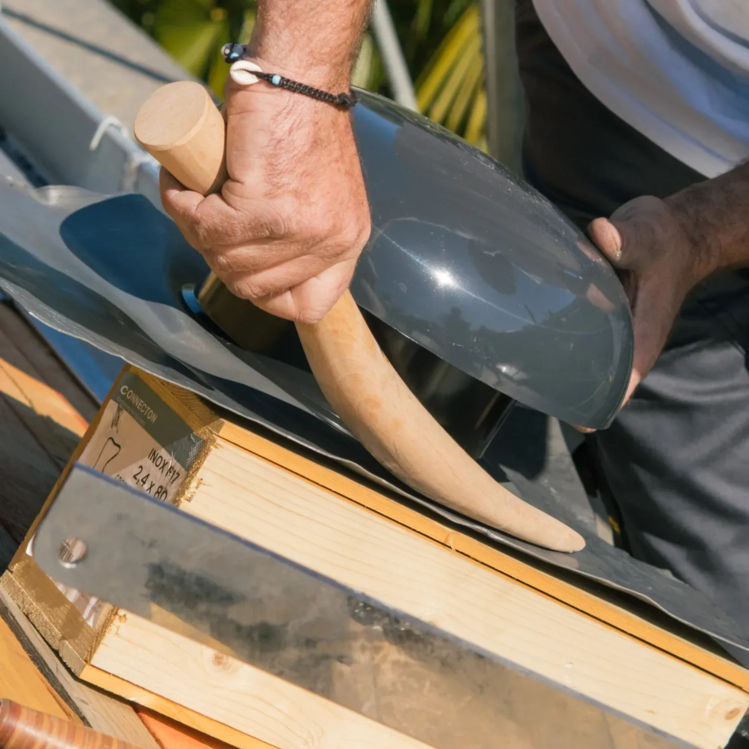 Batte de plombier en bois dur (hêtre ou frêne) avec arêtes arrondies pour former, mouler, dresser les feuilles de plomb, cuivre, aluminium, zinc et de tout autre métal tendre.