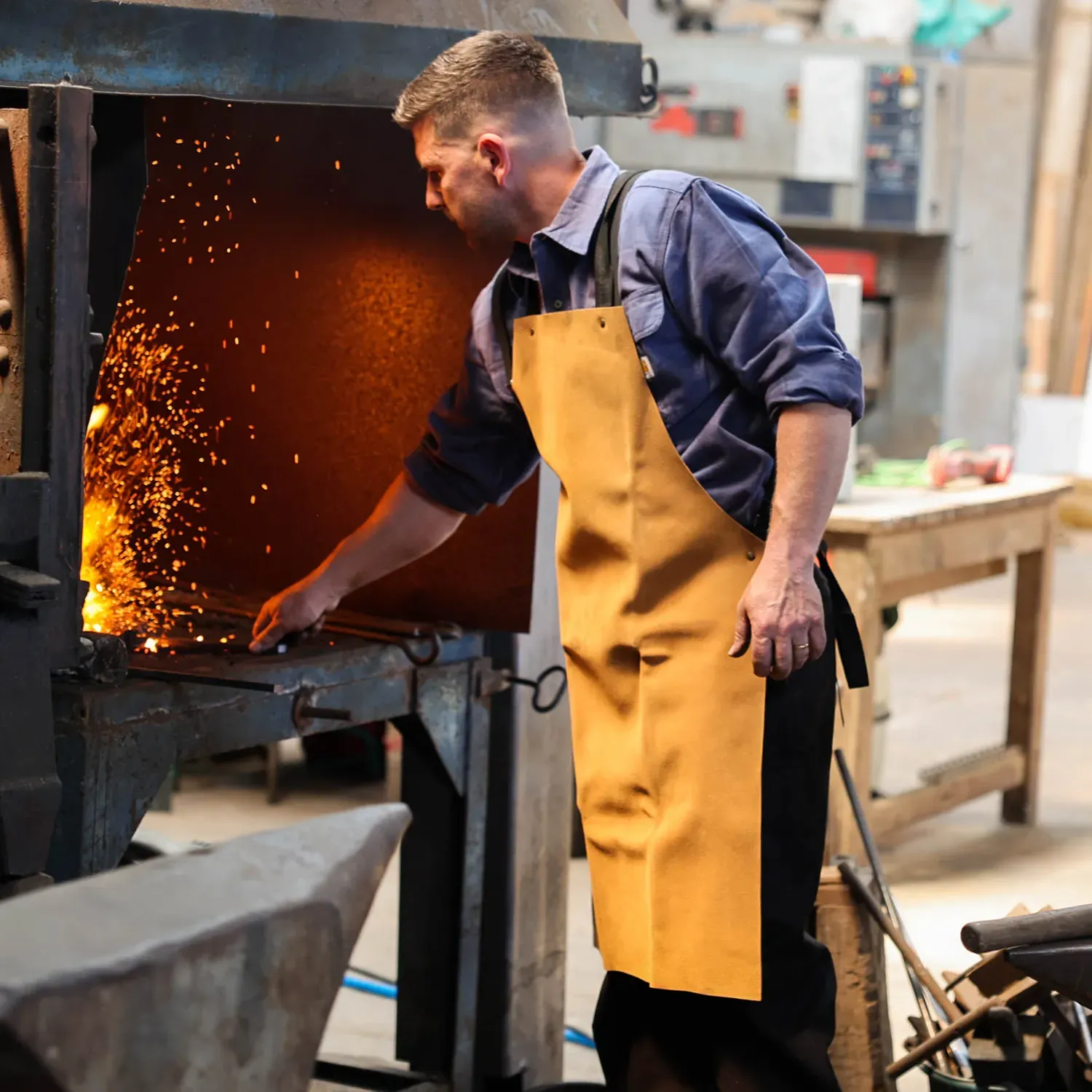 Ce tablier idéal pour les travaux d'atelier est conçu dans une pièce de cuir de grande qualité et très doux. Descendant jusqu'aux genoux, il vous protège et est très agréable à porter.