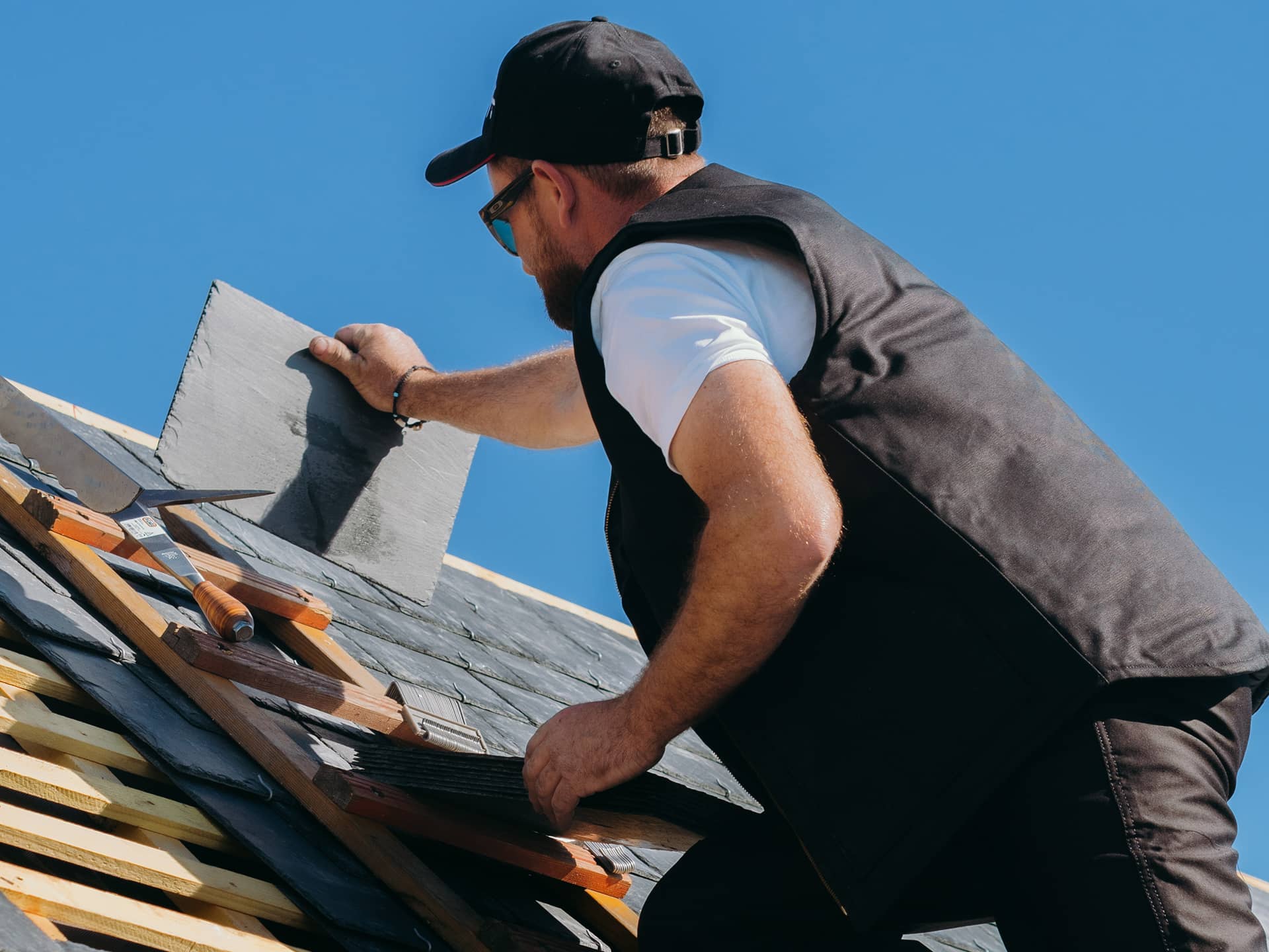 Enclume de couvreur Vergez Blanchard made in France sur un toitLargoet de couvreur Le Beau-fort demi-hussard noirCouvreur sur un toit qui porte une casquette avec le blason des artisans couvreursCouvreur sur un toit qui travaille en short, avec une enclume de couvreurUtilisation d'un marteau de couvreur Picard sur des ardoises Casquette  de couvreur Larget & ColtinUtilisation d'une enclume de couvreur et d'un marteau de couvreur par un artisanManipultation d'un marteau de couvreur avec des ardoisesShort de travail pour couvreur Snickers WorkwearShort de travail snickers workwear pour artisan covureurUtilisation d'une batte de couvreurUtilisation d'un batte de couvreur cintrLes différents types de battes de couvreur zingueurBatte de zingueurHacette de couvreur haut de gamme de la marque HalderEnclume et marteau de couvreur sur un toit avec des ardoisesHachette de couvreur sur un toit avec des ardoises posée sur du zinc